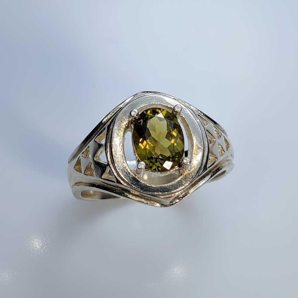 1.1ct Rare Natural olive green Epidote unisex man's ring Silver, Gold, Platinum