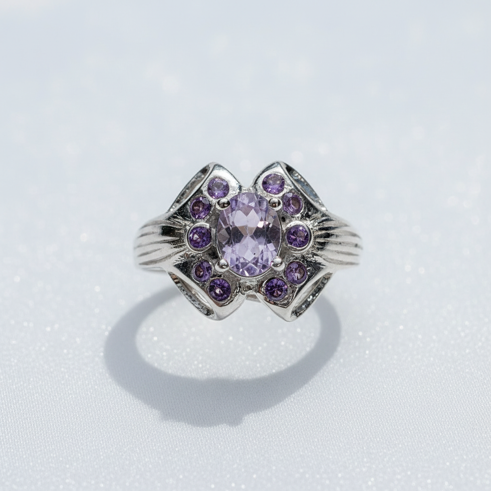 3.84ct Natural Amethyst crown ring 925 Silver / Gold/ Platinum