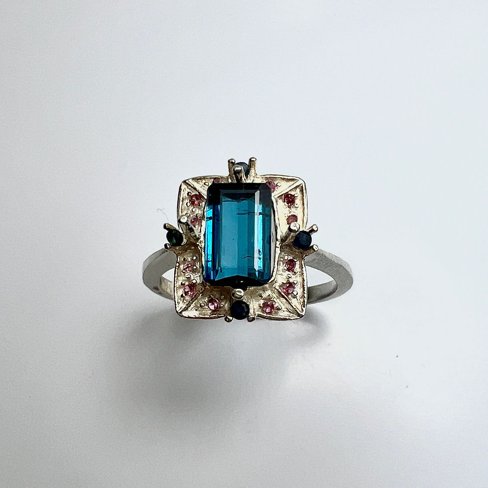 1.1ct Natural Indicolite tourmaline 925 Silver / Gold/ east west ring