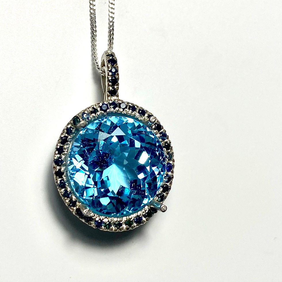 14.7ct Natural Swiss Blue Topaz Silver / Gold / Platinum pendant